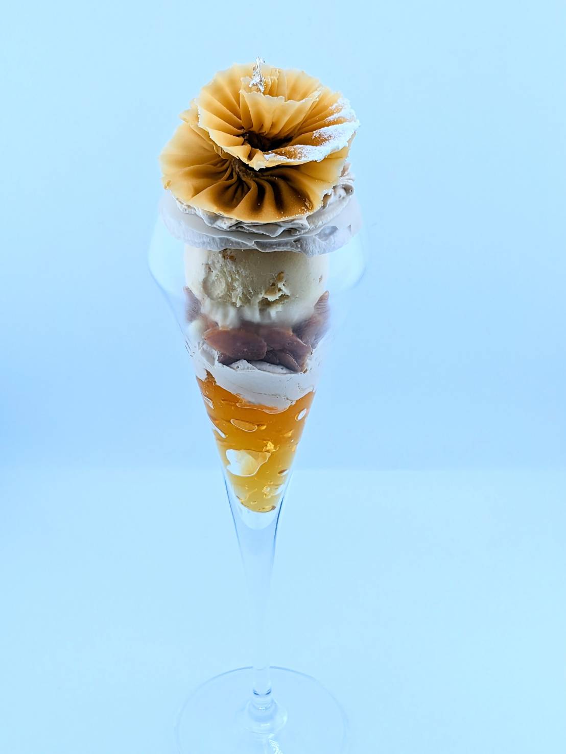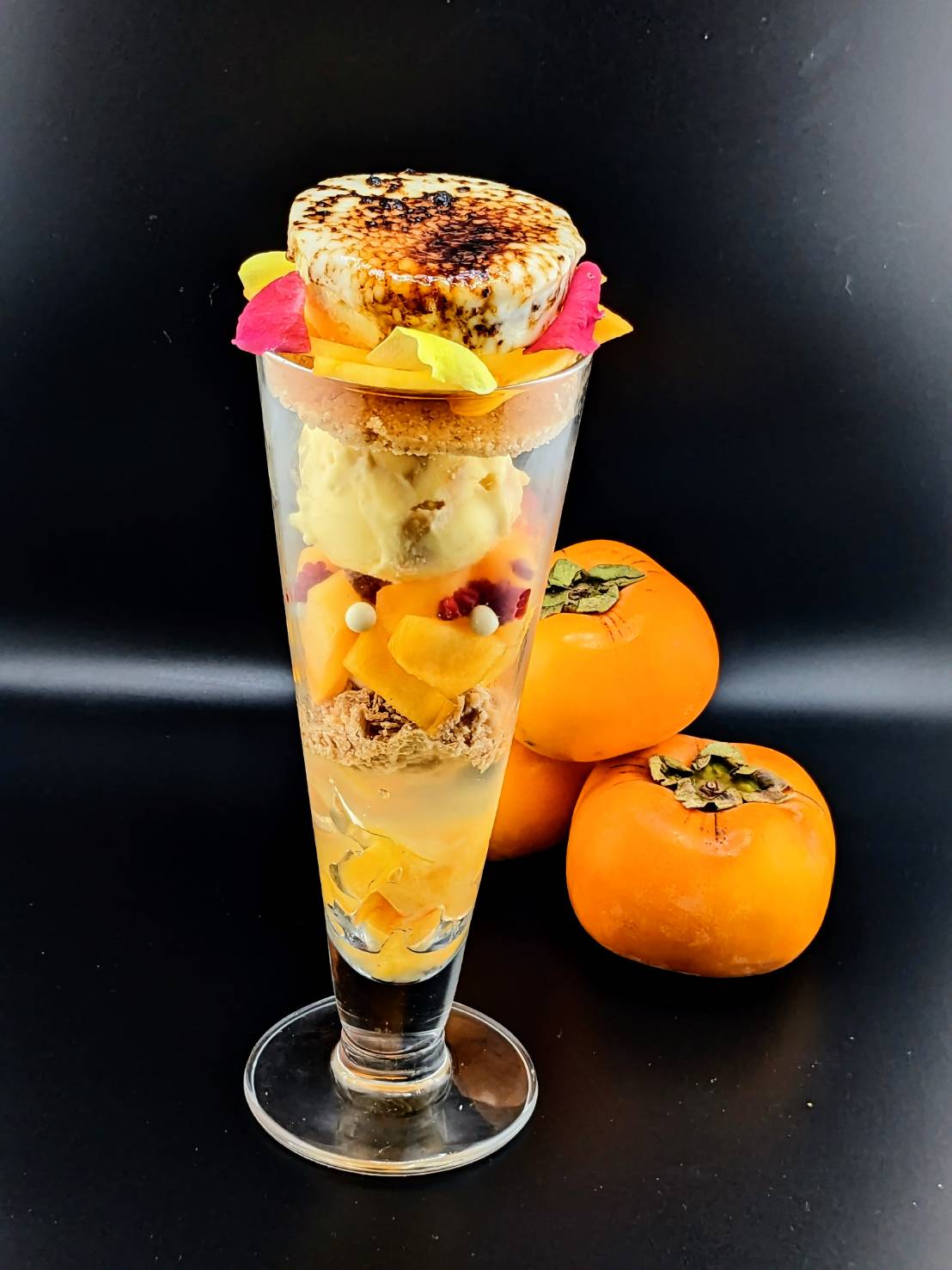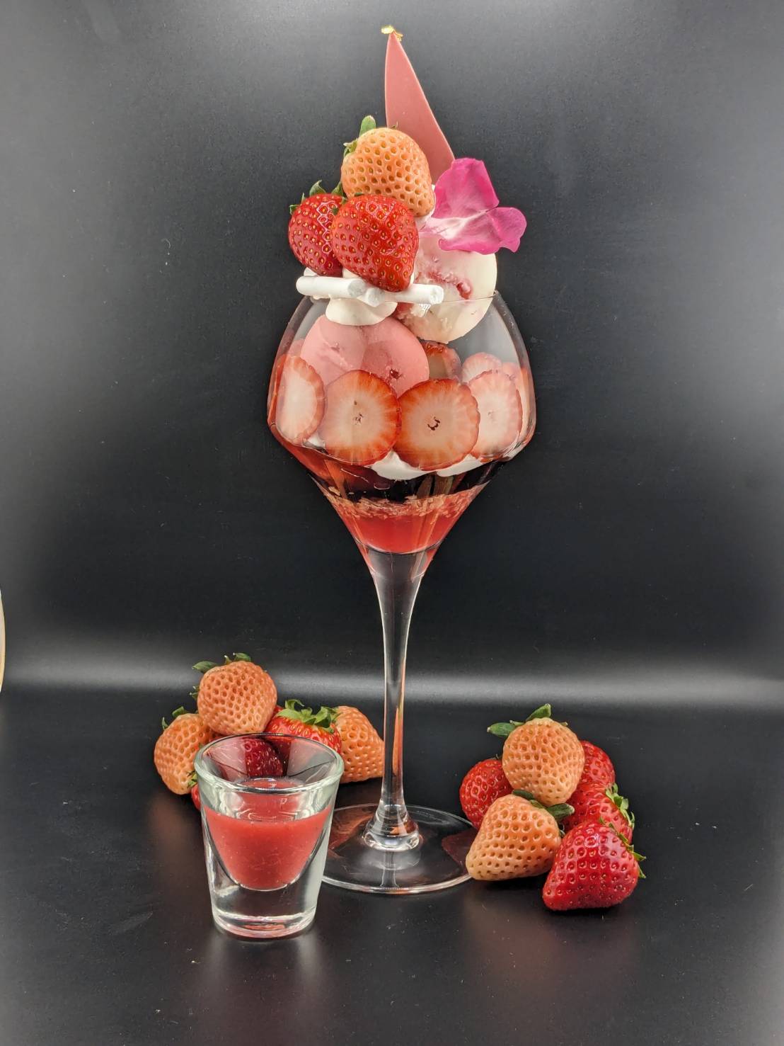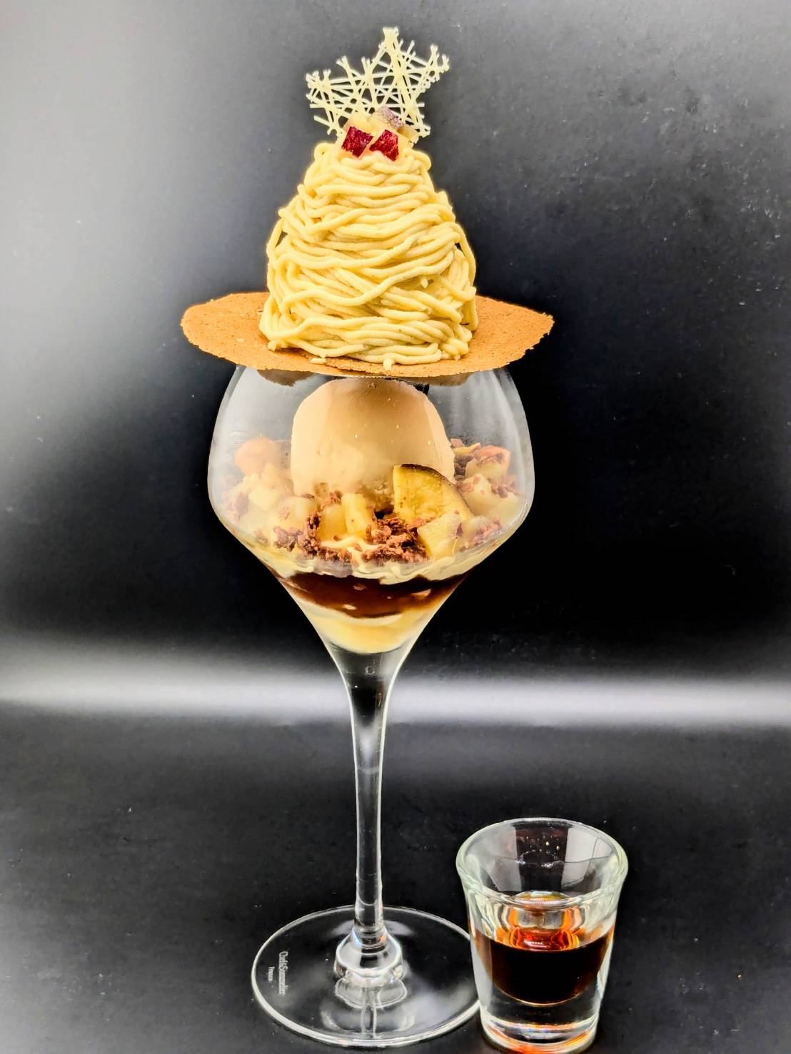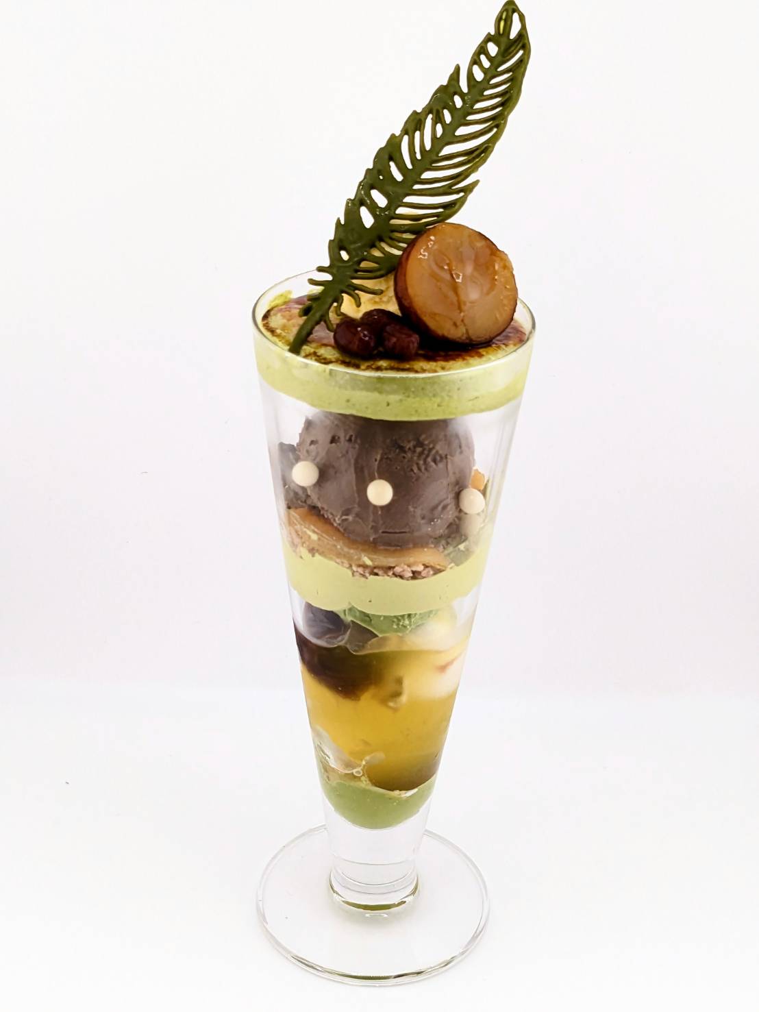 当店のパフェは、生菓子や焼き菓子、アイス、コンフィチュールなど、一つひとつのパーツに技術とこだわりを詰め込んだ一皿です。素材ごとに温度や食感、量のバランスを細かく調整し、15年以上の経験を持つパティシエが丁寧に仕上げています。