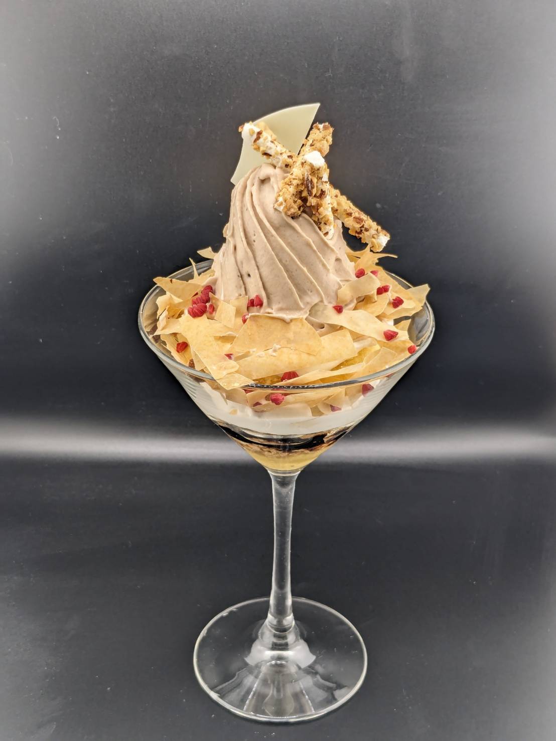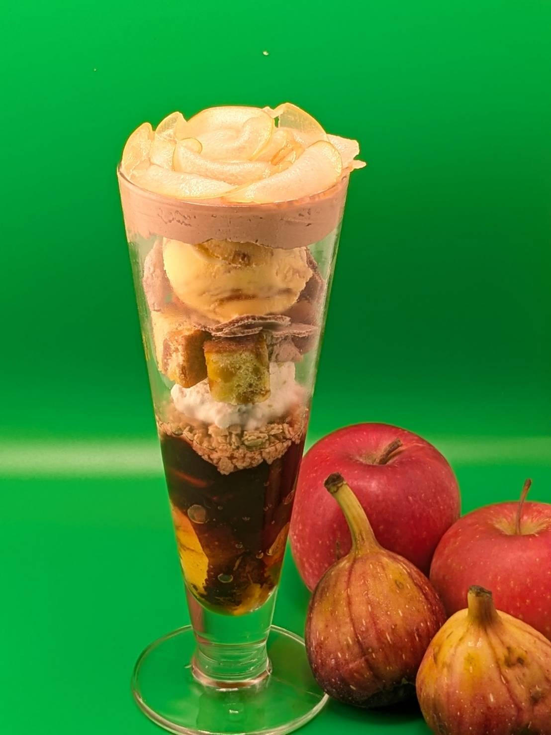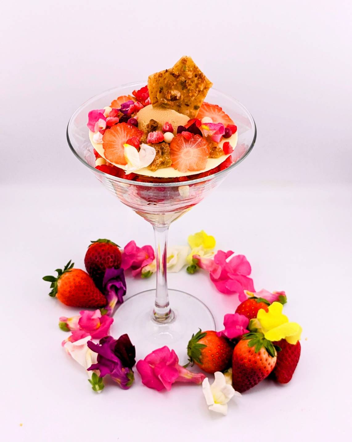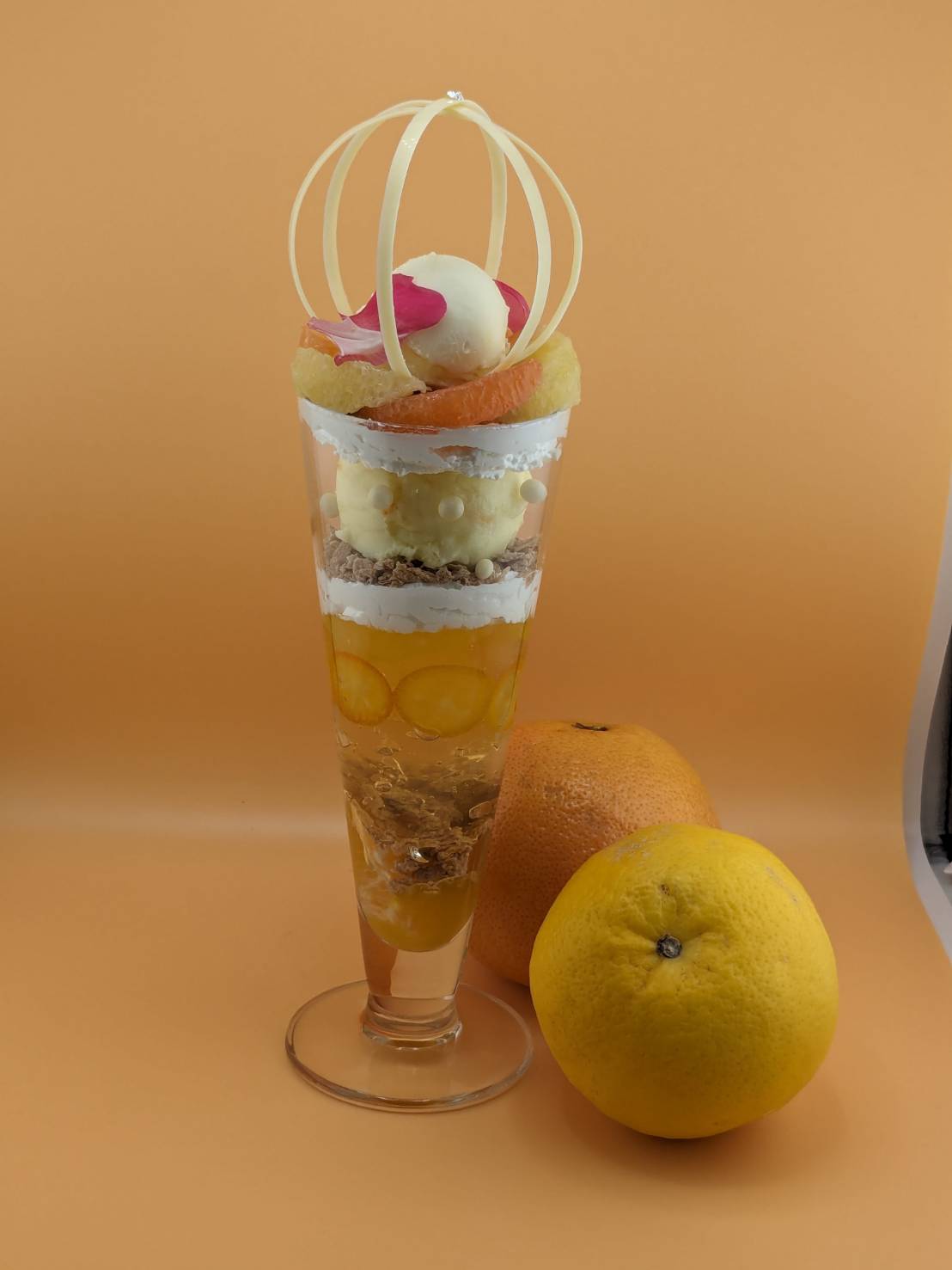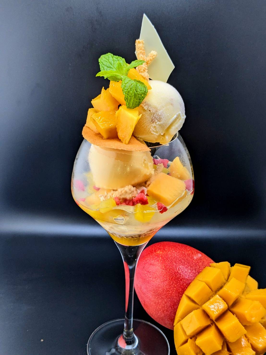 当店のパフェは、生菓子や焼き菓子、アイス、コンフィチュールなど、一つひとつのパーツに技術とこだわりを詰め込んだ一皿です。素材ごとに温度や食感、量のバランスを細かく調整し、15年以上の経験を持つパティシエが丁寧に仕上げています。